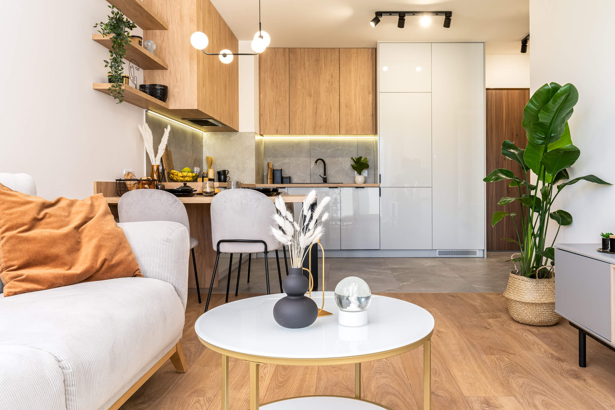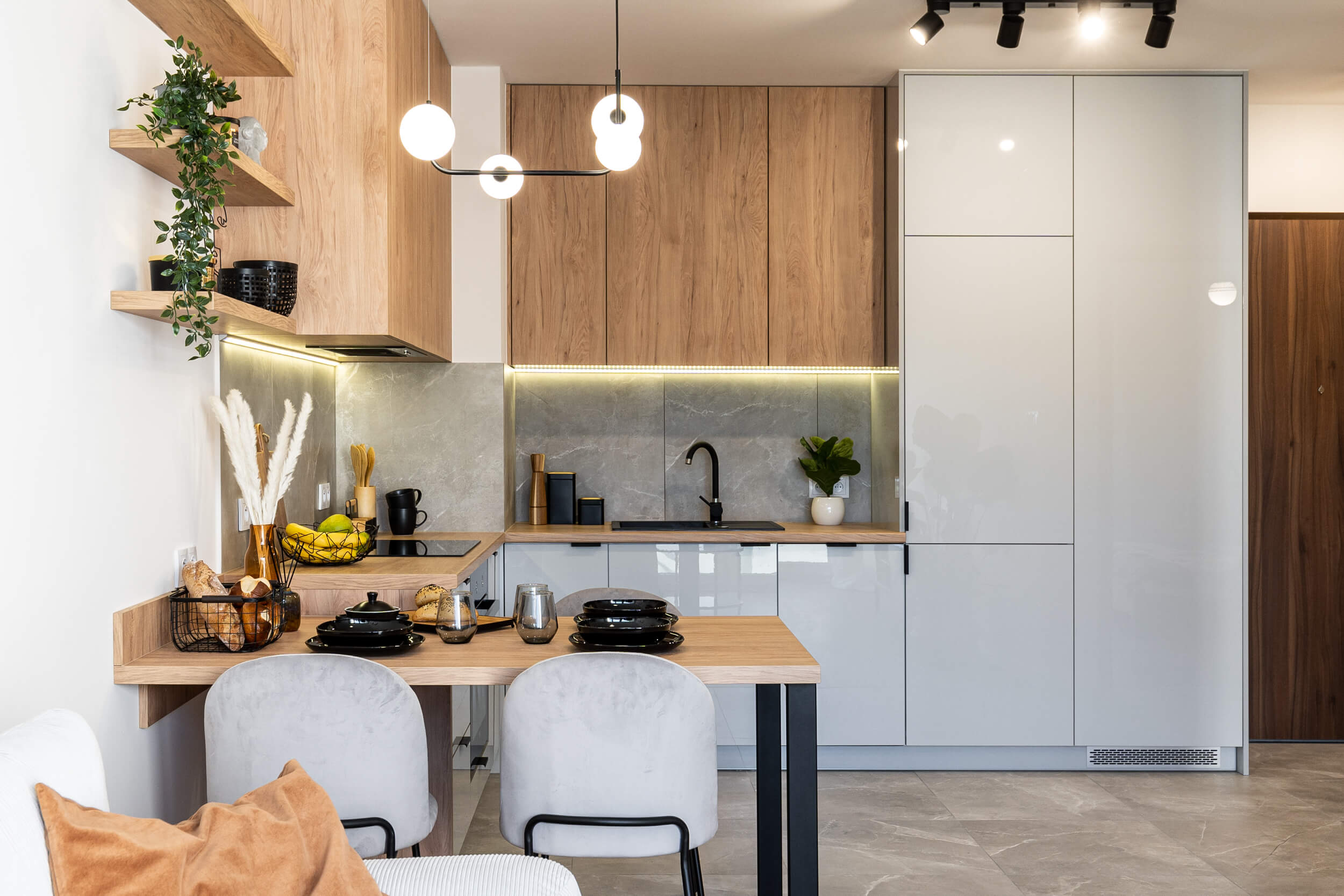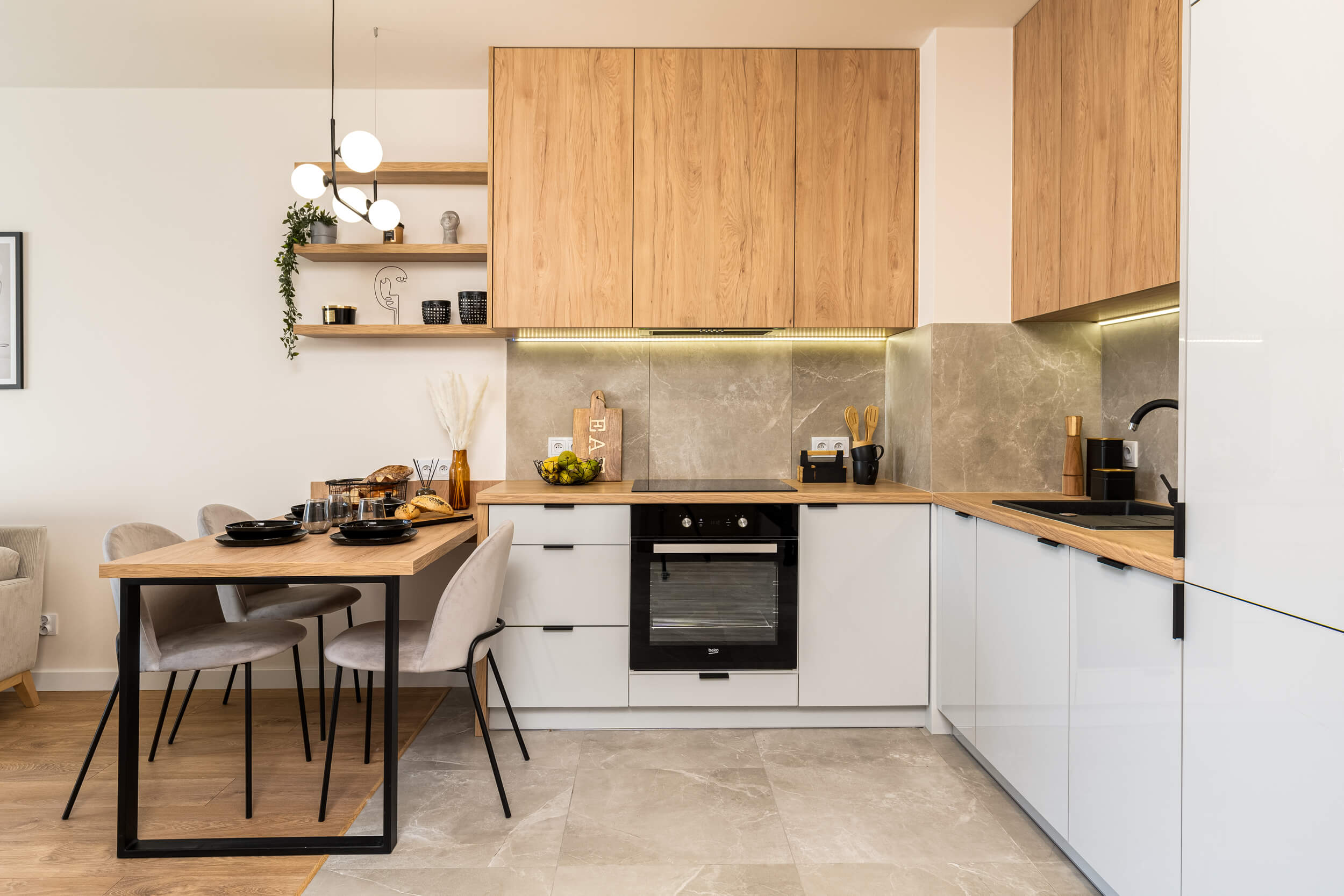 Zlokalizowane na 3 piętrze w kameralnym 4. piętrowym bloku w inwestycji Murapolu "Królewskie Taras" w Wieliczce, oddane do użytkowania w 2020 roku. Remont mieszkania zakończony w marcu 2021. Na ścianach i sufitach gładzie. W mieszkaniu zamontowano drzwi wewnętrzne. Na podłogach wysokiej klasy panele oraz gres szkliwiony. Zabudowy karniszy wyposażono w nowoczesne oświetlenie ledowe. Mieszkanie o powierzchni użytkowej 38 m2 składa się z salonu z aneksem kuchennym, sypialni, łazienki oraz balkonu. Aneks kuchenny wyposażony w piekarnik, płytę indukcyjną, lodówkę zmywarkę i okap oraz pojemne szafki kuchenne wykonane na wymiar. Wszystkie sprzęty są nowe i na gwarancji. W salonie znajduje się wygodna sofa, stolik kawowy, komoda rtv oraz stół z krzesłami. Mieszkanie urządzone sprzedawane jest z całym wyposażeniem i elementami dekoracyjnymi. Łazienka wyposażona w wannę (z możliwością montażu parawanu prysznicowego), umywalkę, szafki na kosmetyki, stelaż podtynkowy z miską WC Grohe oraz duże lustro i kaloryfer ręcznikowy. W mieszkaniu ogrzewanie oraz ciepła woda z centralnej kotłowni gazowej znajdującej się poza budynkiem. Możliwość podłączenia szybkiego Internetu oraz telewizji kablowej.